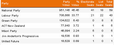 Update: the seat numbers changed on 22nd of Nov with National down 1 to 48 and the Greens up 1 to get 9 seats. The linked table is more up to date than the screenshot below. Will update that soon.
