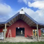 It has been a slow process and I have referred to it more than once as the slowest barn raising in history. The Amish will build a barn in a few days but here we are two years along. Also the community fund raised for years to be able to buy materials. Bruce Parker is the designer. Walls are plywood – inside and out and it does look like a mid west barn.