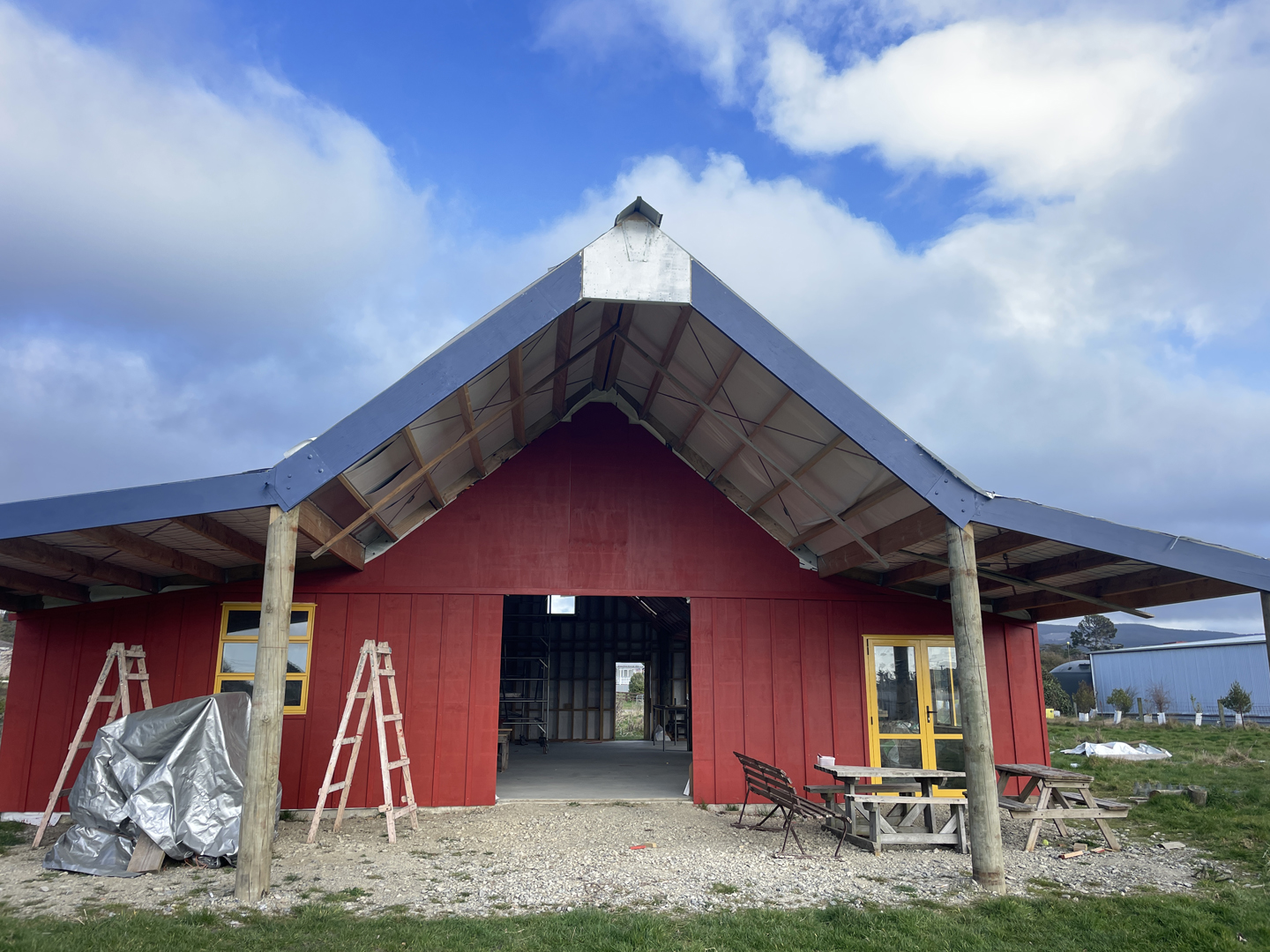 I have been one of the core people helping to build the physical building. It is a 4 bay post barn that is around 240 square metres. One bay is open. The other 3 bays are inside and that gives 180 square metres for a maker space, tool workshop, pottery wheels and other all hours activity spaces.