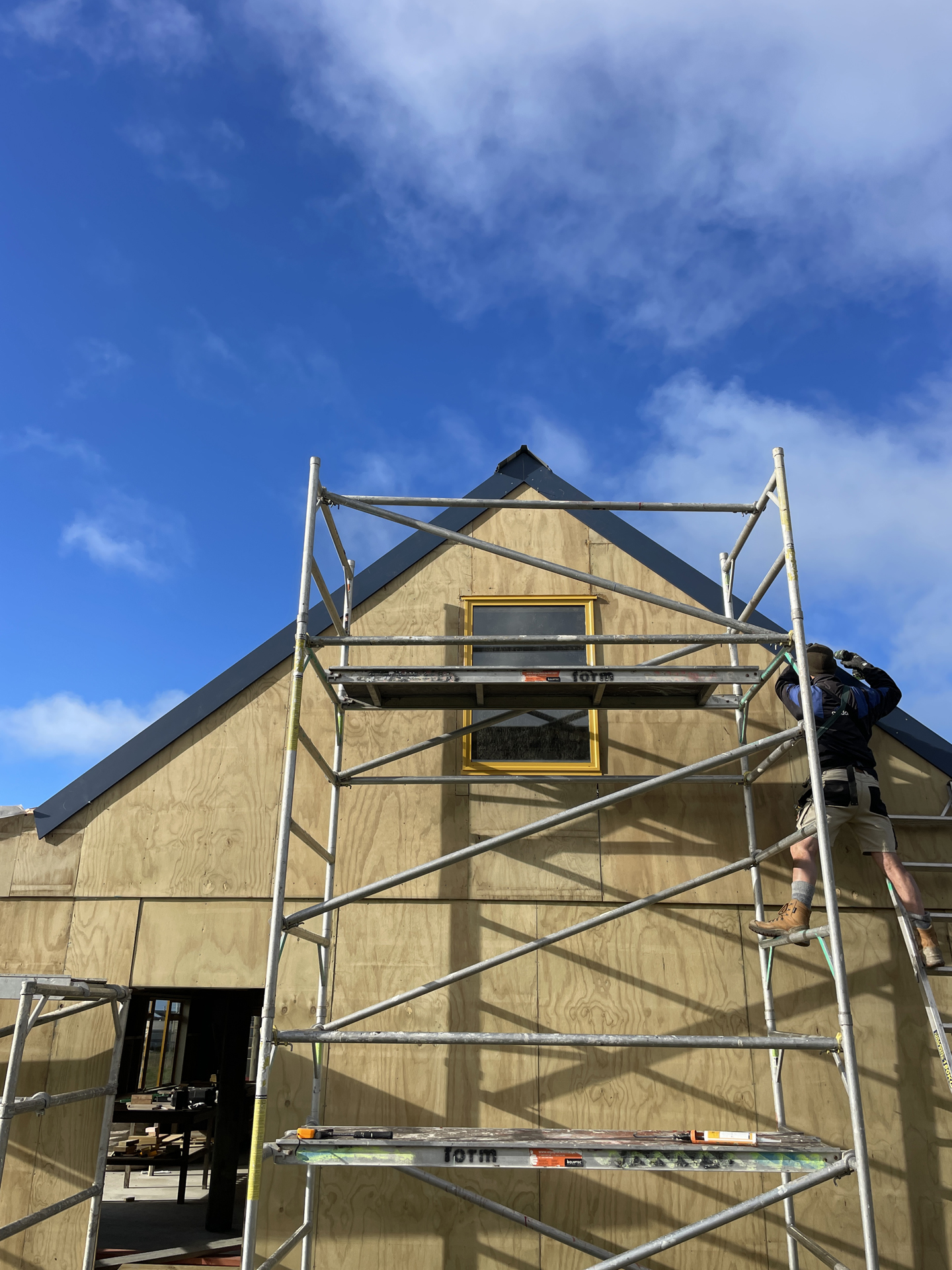 - Outside plywood cladding on and a window at one end